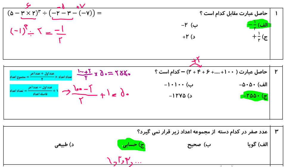 نمونه سوالات ریاضی نهم تیزهوشان با جواب